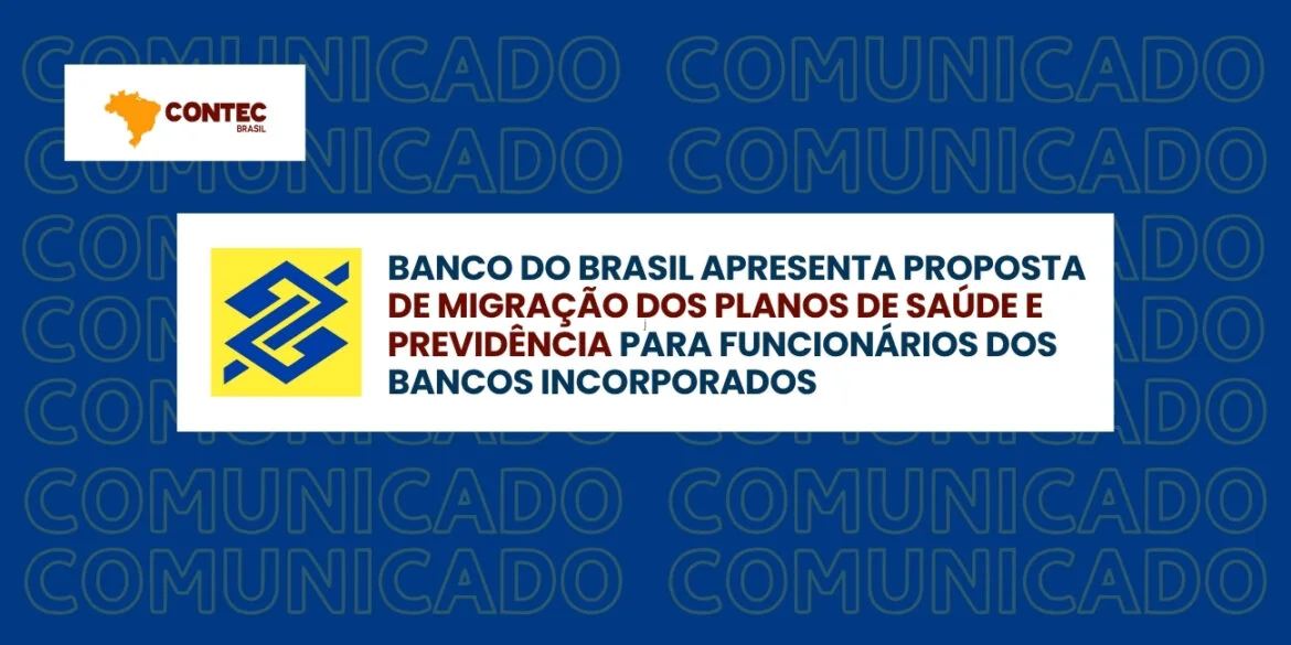 Em reunião realizada nesta terça-feira, 29 de julho de 2025, o Banco do Brasil apresentou à CONTEC e representantes sindicais proposta referente à migração dos planos de saúde e previdência dos funcionários oriundos de bancos incorporados (BNC, BESC e BEP). A proposta atende a compromissos assumidos na negociação coletiva de 2023 e visa à integração dos empregados no âmbito dos planos geridos pela Previ e pela CASSI.