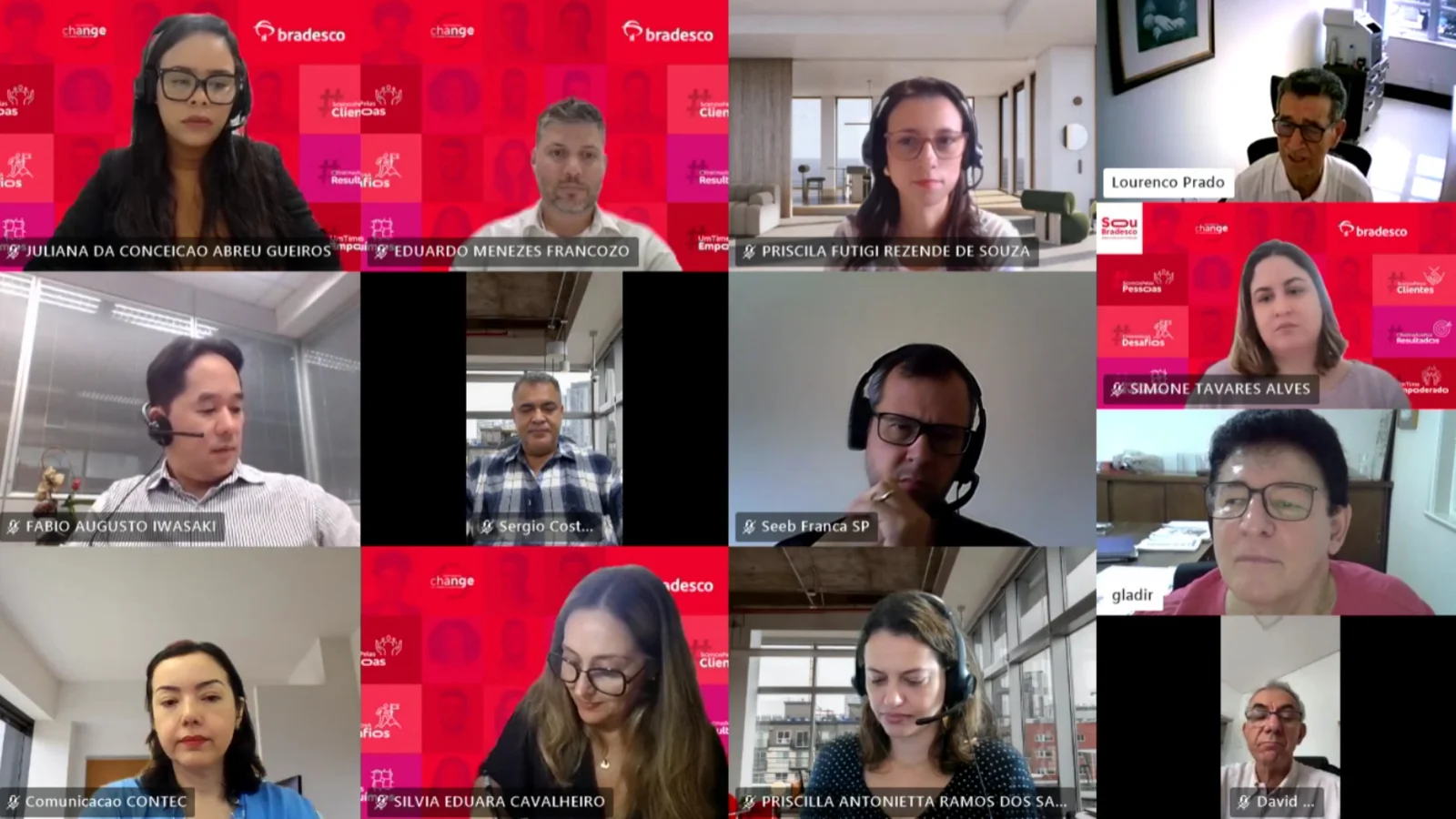 A reunião contou com a presença de representantes da CONTEC, incluindo o presidente Lourenço Prado, Gladir Basso, David Zaia, Sérgio Costa e Breno Ferreira de Souza, além da equipe do Bradesco composta por Silvia Eduara Cavalheiro, Juliana da Conceição Abreu Gueiros, Eduardo Menezes Francozo, Simone Tavares Alves, Fábio Augusto Iwasaki, Priscilla Antonietta Ramos dos Santos e Priscila Futigi Rezende de Souza.