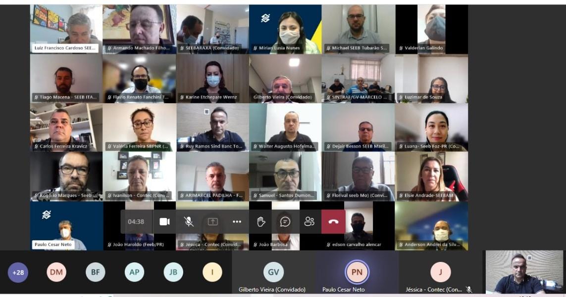 Representaram a Contec o Coordenador da Comissão, Gilberto Antonio Vieira e Jéssica Alencar (CONTEC) e os seguintes dirigentes: Dejair Besson e Rogério Marques (FEEB-SP/MS), Florival, Dirceia, Gorette, José Fernandes Godoi, Marcelo Pizzo, Martin, Ricardo, Tiago e Valéria Ferreira de Oliveira (FEEB-MG/GO/TO/DF), João Haroldo Ruiz Antonio Ribas Maciel Júnior, Carlos Kravicz e Luana (FEEB-PR), Armando Machado Filho, João Barbosa, Luiz Francisco Cardoso, Michael da Silva e Walter Augusto Hofelmann (FEEB-SC), Ruy Ramos, presidente do Sintec-TO,Edson, Ivanilson Batista Luz (FEEB GO/TO), Valderlan Galindo Ramos (FEEB-AL/PE/RN), Elsie de Andrade Farias e Arimarcel Padilha (FEEB PB).