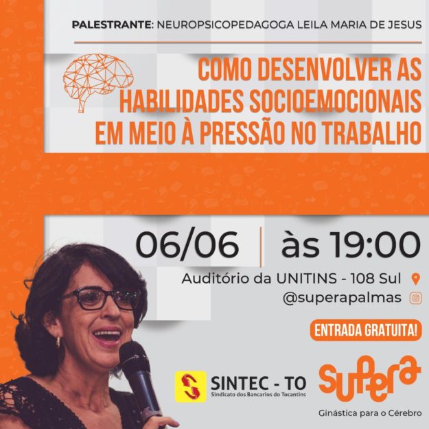 Método Supera Palmas, em parceria com o SINTEC promoverá no dia 06 de Junho às 19 horas, uma palestra com o tema “ COMO DESENVOLVER AS HABILIDADES SOCIOEMOCIONAIS EM MEIO A PRESSÃO NO TRABALHO” Sobre: Muitas pessoas não conseguem controlar suas emoções em situações de pressão, estresse e até de euforia e felicidade. Nestas situações,…