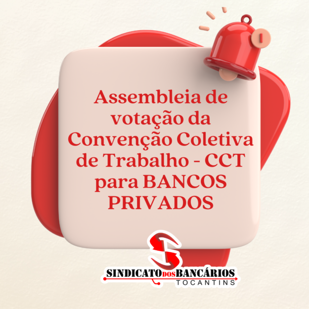 Hoje, sexta-feira, 06 de setembro de 2024, o Sindicato dos Bancários do Tocantins (SINTEC-TO) realiza a Assembleia de Votação da Convenção Coletiva de Trabalho (CCT) e dos Acordos Coletivos de Trabalho (ACTs) específicos do Banco do Brasil, Caixa Econômica Federal e Banco da Amazônia. A votação ocorrerá das 10h às 18h, conforme abaixo: Modalidades de…