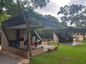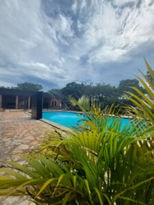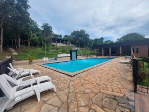 Disponibilizamos freezer, cadeiras, mesas, churrasqueira com grelha, piscina adulto e infantil.