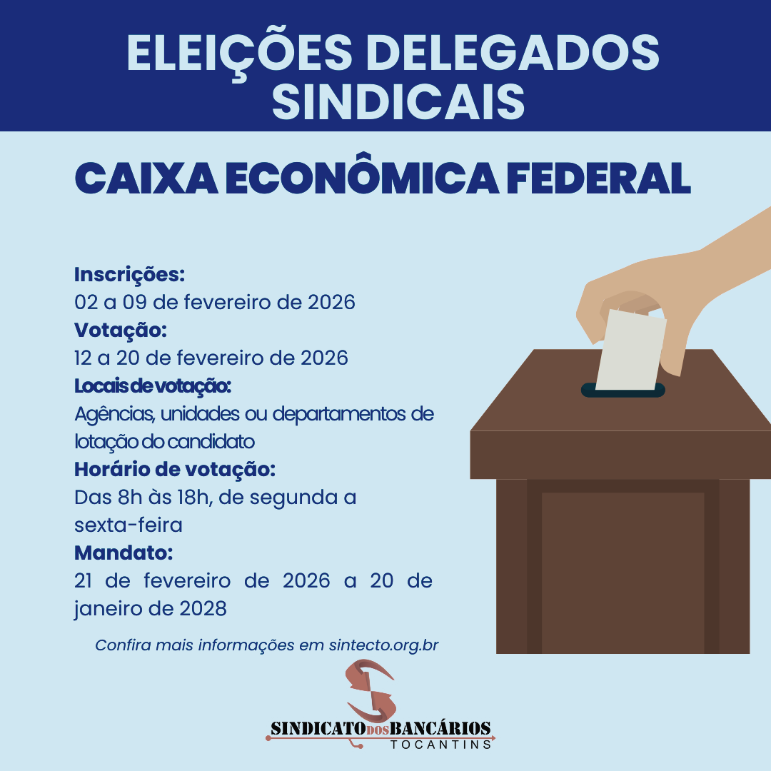 Começou hoje o período de inscrições para as eleições de Delegados Sindicais da Caixa Econômica Federal. As inscrições seguem até o até o dia 9 de fevereiro.