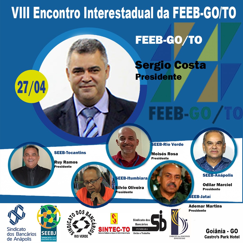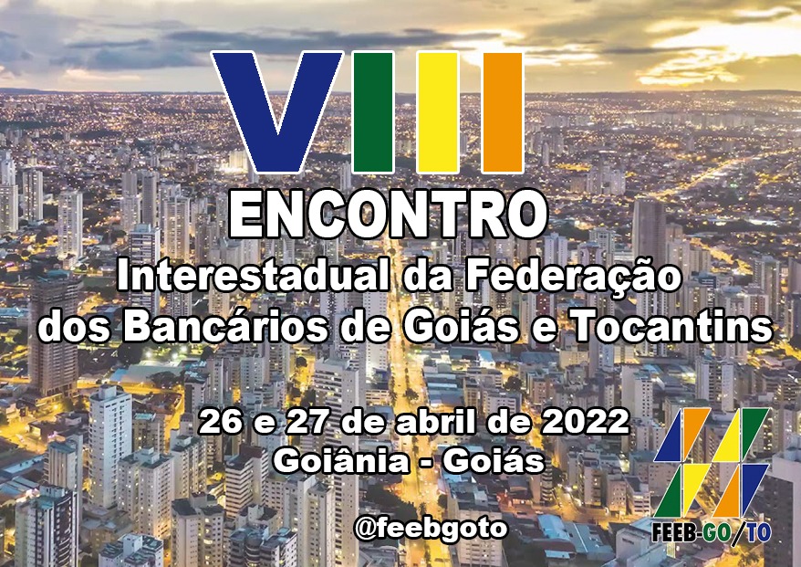 O VIII Encontro Interestadual da Federação dos Bancários de Goiás e Tocantins será realizado nos dias 26 e 27 de abril, na capital goiana.