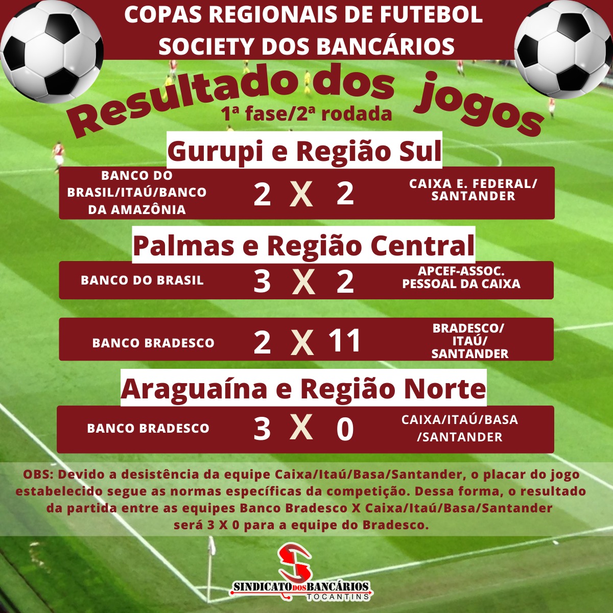 Copas Regionais de Futebol Society dos Bancários: resultado da 2ª rodada da 1ª fase
