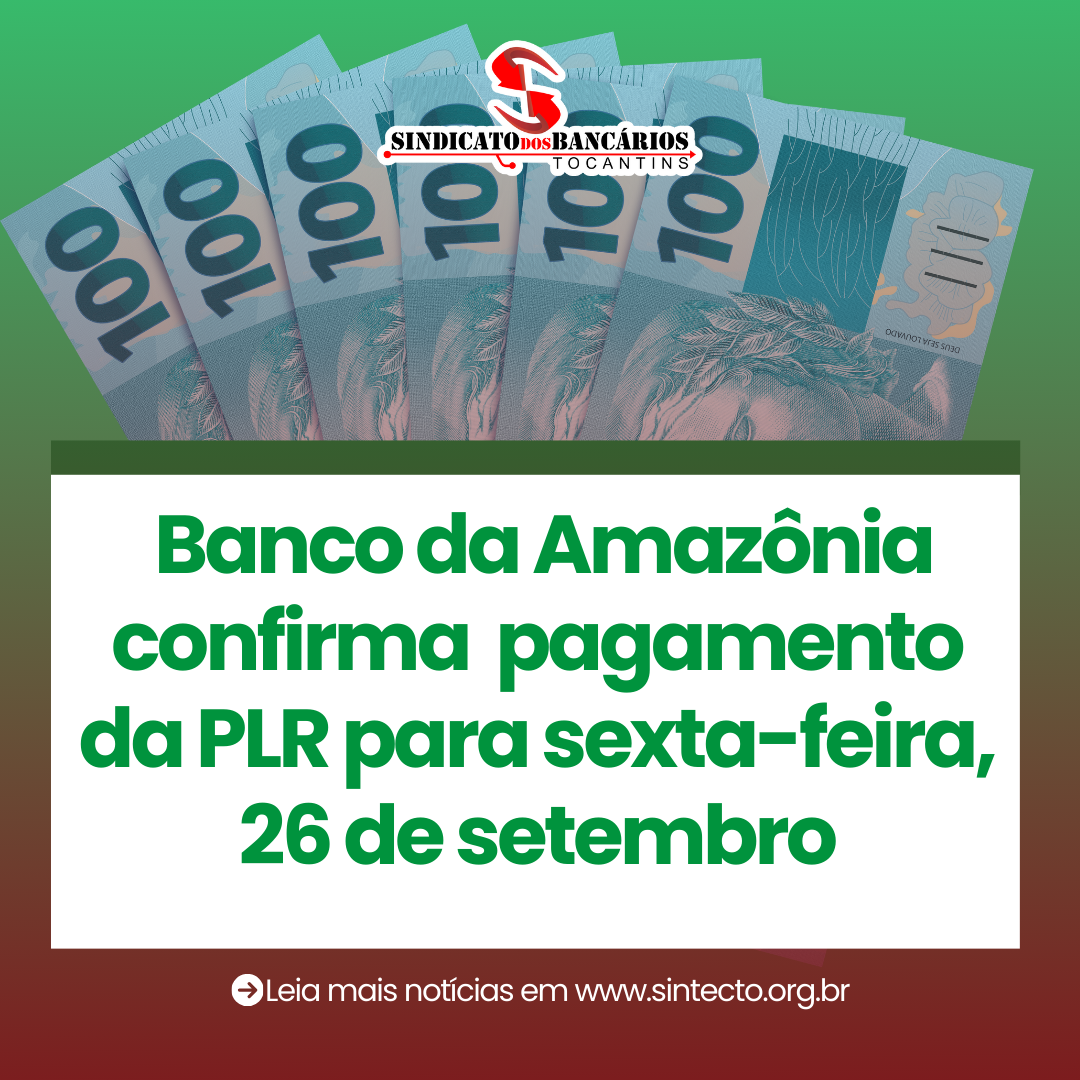 Veja maisO Banco da Amazônia informou que realizará o pagamento da Participação nos Lucros e Resultados (PLR) na sexta-feira, 26 de setembro de 2025. A PLR é uma conquista histórica da categoria, fruto de anos de negociações conduzidas pelo movimento sindical, que busca valorizar o trabalho dos bancários e reconhecer o esforço dos trabalhadores no desempenho…