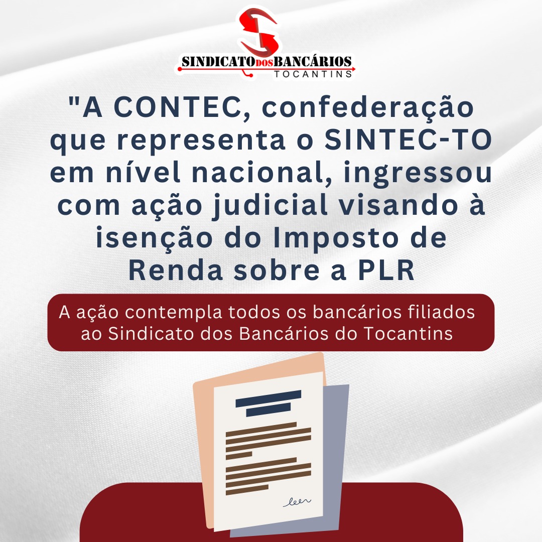 A CONTEC (Confederação Nacional dos Trabalhadores nas Empresas de Crédito), que representa o SINTEC-TO (Sindicato dos Bancários do Tocantins) em nível nacional, deu um passo importante na luta pelos direitos dos bancários. A confederação ingressou com uma ação judicial que visa a isenção do Imposto de Renda sobre a Participação nos Lucros e Resultados (PLR),…
