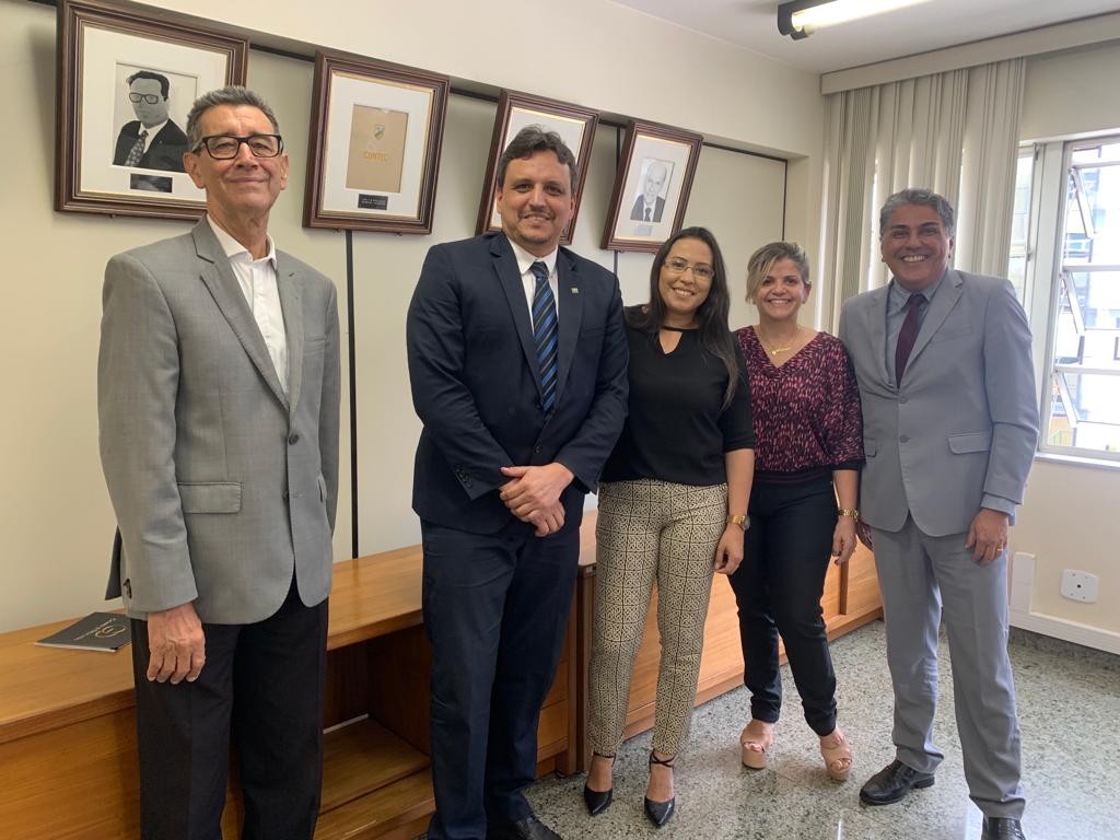 Nesta quarta-feira, 16, o Sintec-TO, representado pelo advogado Ciney Gomes, esteve reunido com o presidente da Contec, Lourenço Prado, com os advogados da entidade, Dr. Leonardo Rezende e Dra Juliana Milanez e a secretária do jurídico da Contec, Márcia Freitas.